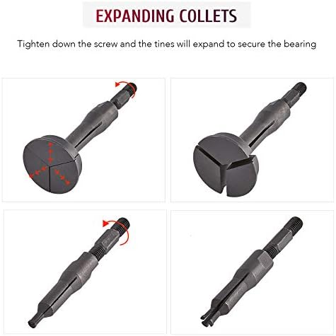 3.WIDE APPLICATION: This internal bearing puller set’s expandable collets and threaded screw adapters remove tight and jammed axles, bearings, and bushings on a wide variety of vehicles without damaging the removed parts