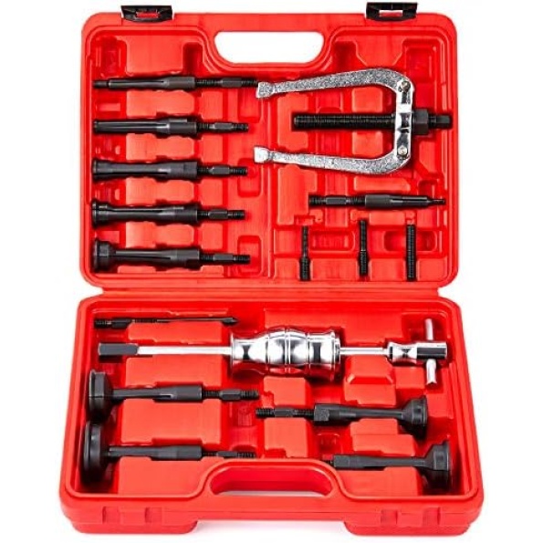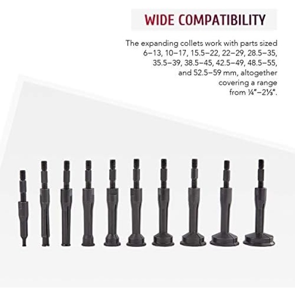 1.16-PIECE SET: This blind bearing puller set by Orion Motor Tech includes a slide hammer, counterstay puller, spare pin bolt, 3 screw adapters, and 10 split collets to get all your work done on parts from 1/4 to 2-1/3 inch diameter (6-59 mm)