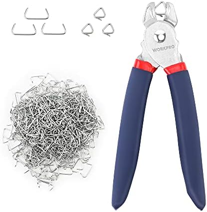 WORKPRO Hog Ring Pliers with 500 Pcs 3/4″ Hog Rings, Galvanized Steel Hog Rings